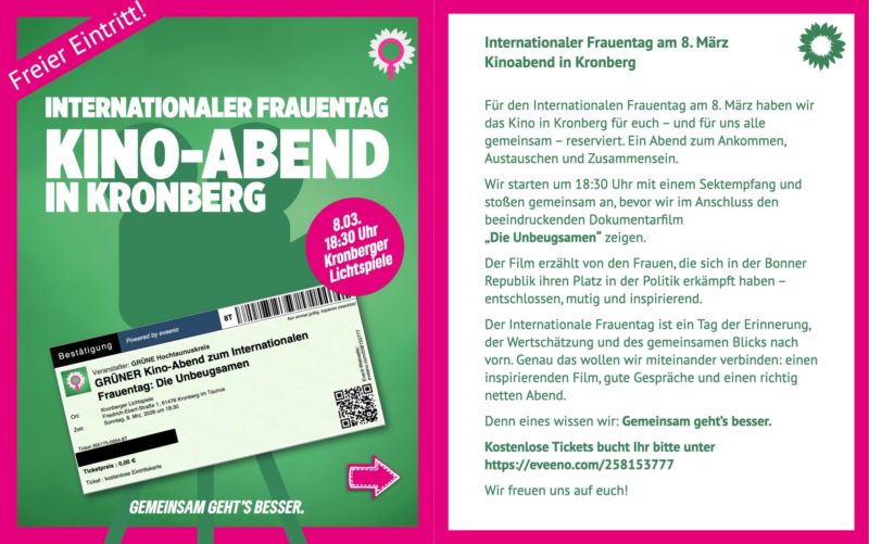 Frauen-Kino-Abend in Kronberg am 08.03.2026: